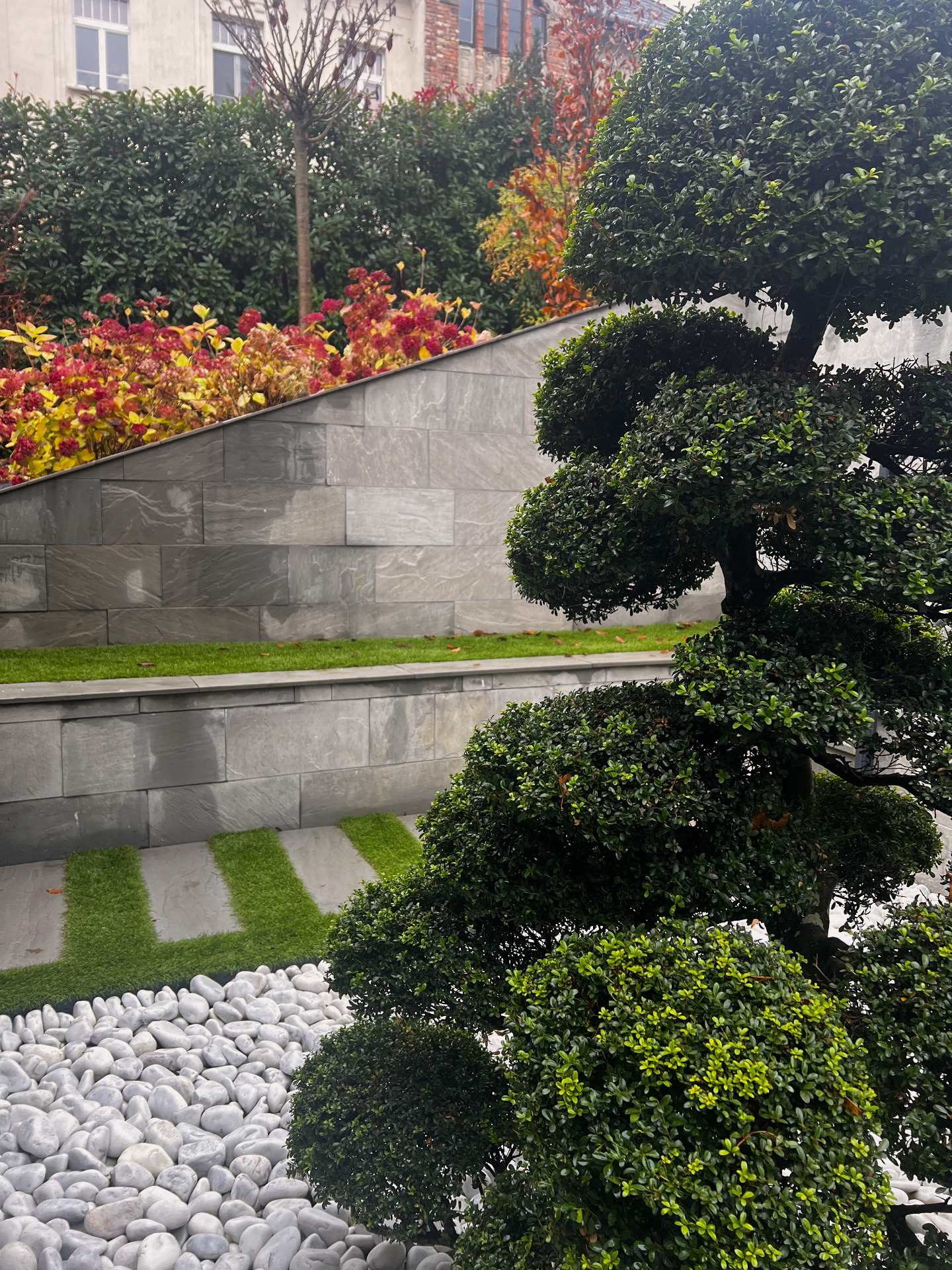 Az építés négy hónapig tartott, nehéz terepen, nagy kőtömegekkel és precíz növénykihelyezéssel. A gondos kivitelezés eredménye egy csendes, időtálló városi oázis lett.